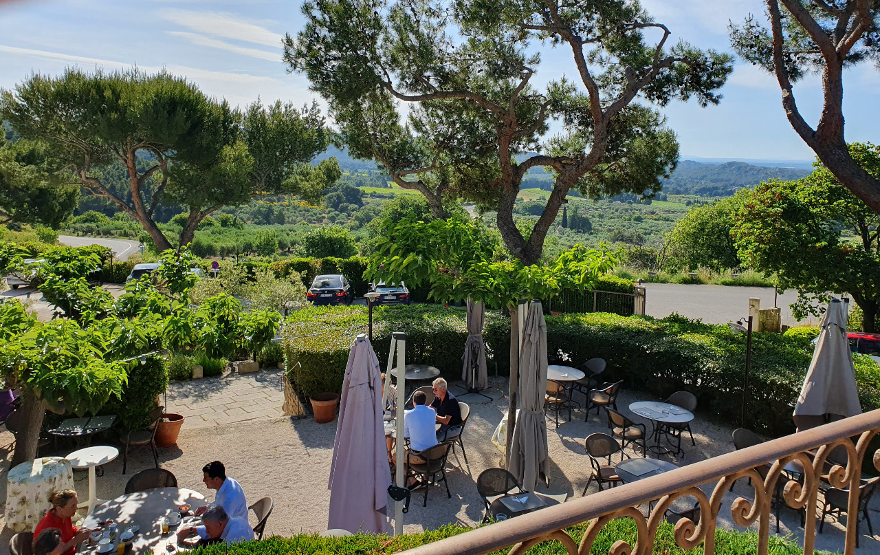 Es hat schon sonnige 22°C, während es in unserem Felsenzimmer noch angenehm kühl ist. Unser erster motorradfreier Tag! Heute machen wir Urlaub vom Reisen. An diesem besonderen Ort Le-Baux-de-Provence bleiben wir heute. Dennoch - und das ist durchaus ungewöhnlich - stehen wir schon um 7:15 Uhr auf. Früher als sonst auf dieser Reise! Noch ungewöhnlicher, es fällt uns ganz leicht! Wir brauchen Zeit, um das Hotel und das Frühstück zu genießen!