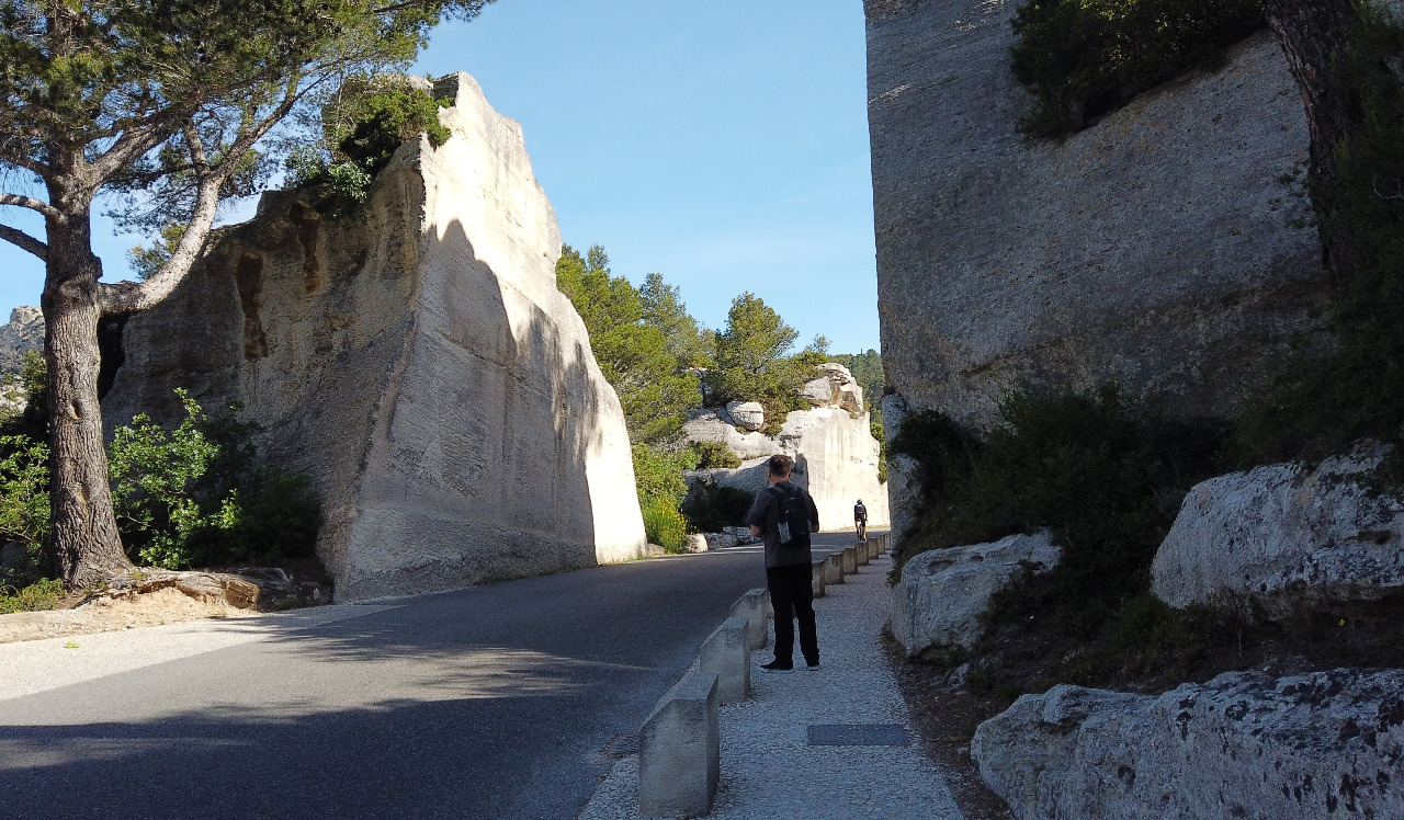 Wir schlendern eine Viertelstunde die schmale Straße durchs Val d´Enfer entlang, die wir gestern hergefahren sind. Wir sind nicht alleine, aber der Zustrom von Touristen hält sich noch in Grenzen. Das freut uns, denn genau deshalb haben wir die erste Vorstellung des Tages gewählt!