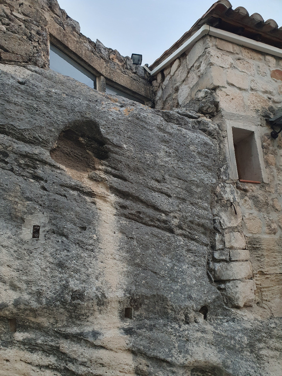 Am Rückweg ins Hotel entscheiden wir, heute abend auf unserer Privatterrasse zu jausnen. Das feudale Menü hatten wir gestern, heute wollen wir es rustikal. Wir brauchen einen Laden mit Brot, Käse und Wurst! Am Weg durch die engen Gassen entdecken wir einen massiven roten Felsblock, der neben der Touristen-Info aufgestellt ist. Bauxit aus Le-Baux!