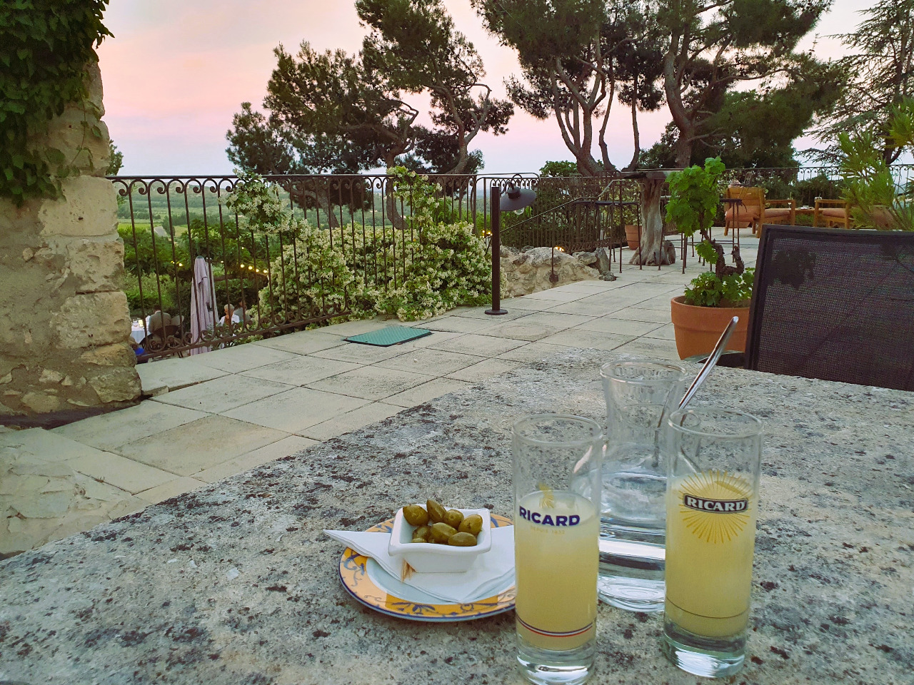 Wir genießen, hier zu sein! Viel später gönnen wir uns noch ein teures Glas Pastis auf der orchideenumrankten Cocktail-Terrasse des Hotels. Der Mistral färbt den Himmel rosa. Was für ein herausragender und außerordentlicher Tag das war! Morgen geht es weiter, zu neuen Abenteuern...