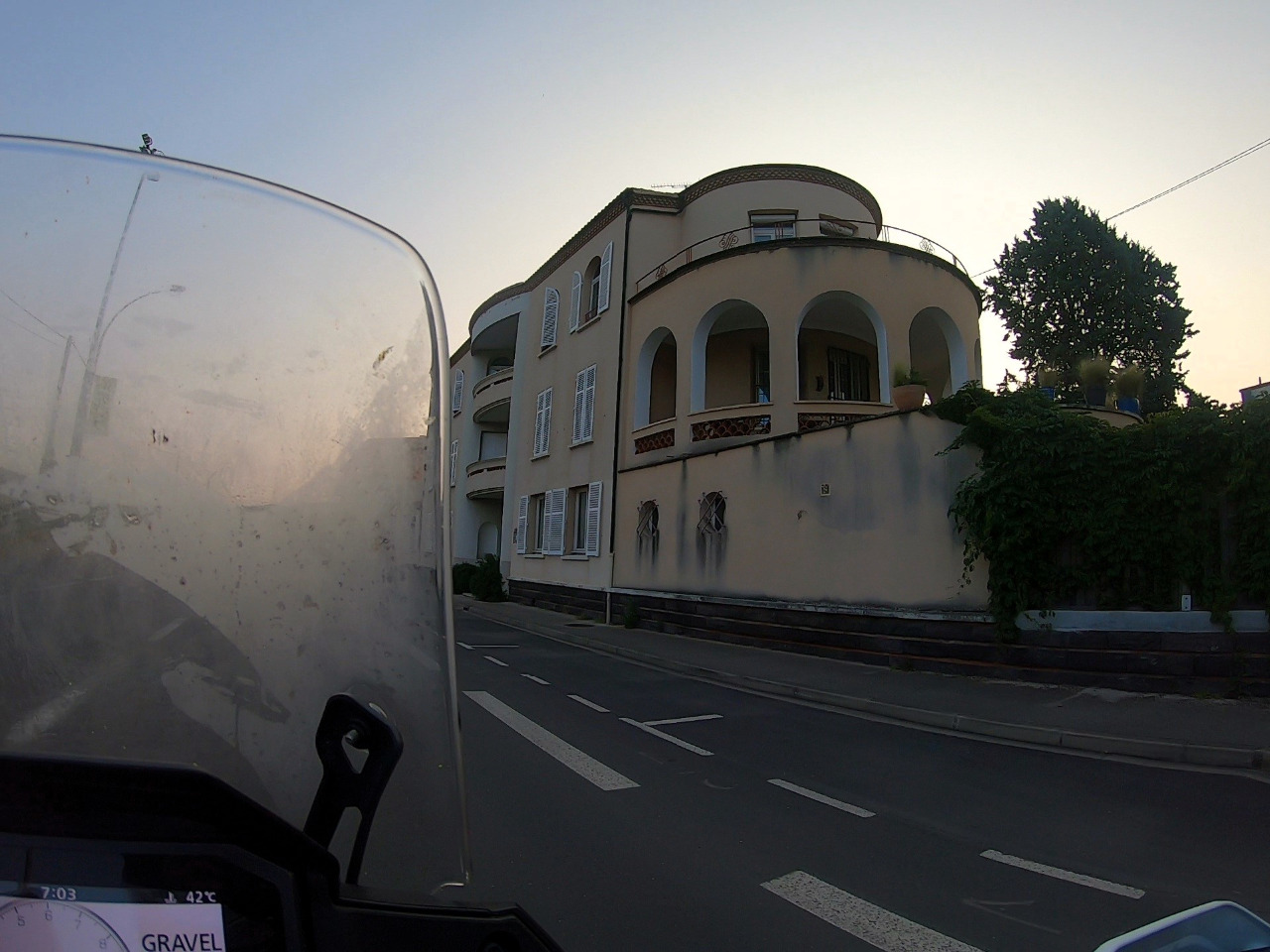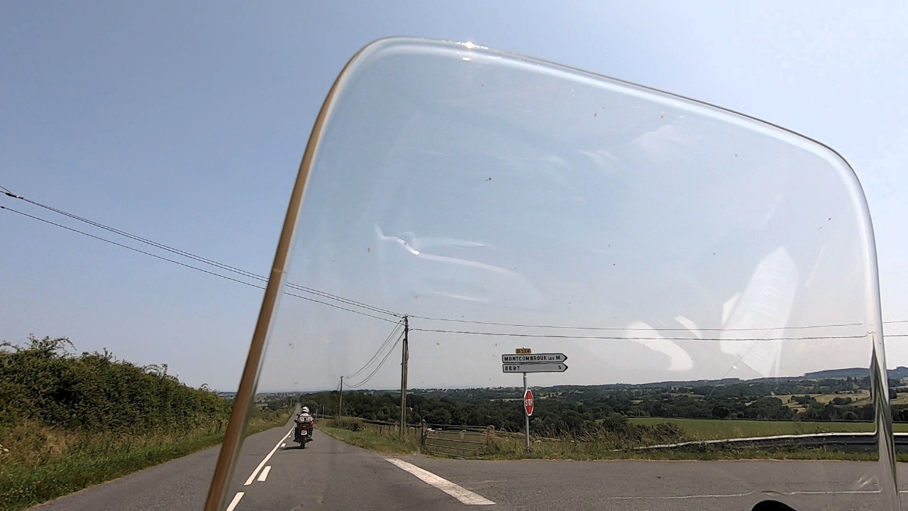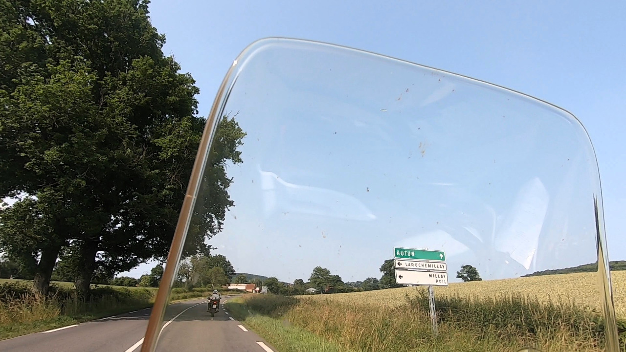 Einen Höhepunkt gibt es jedoch noch! Vor der Kleinstadt Lucy haben kürzlich fertiggestellte Asphaltarbeiten Tonnen von richtig miesem Rollsplitt hinterlassen. Den ganz feinen, wo Motorradreifen keinen Grip finden und Grip bedeutet für Angelika alles! Acht Kilometer tuckern wir viel zu langsam dahin, hinter jeder hängenden Kurve ein weiteres Schild, das vor "GRAVILLONS" warnt. Was für eine mühsame und schwitzige Fahrt!