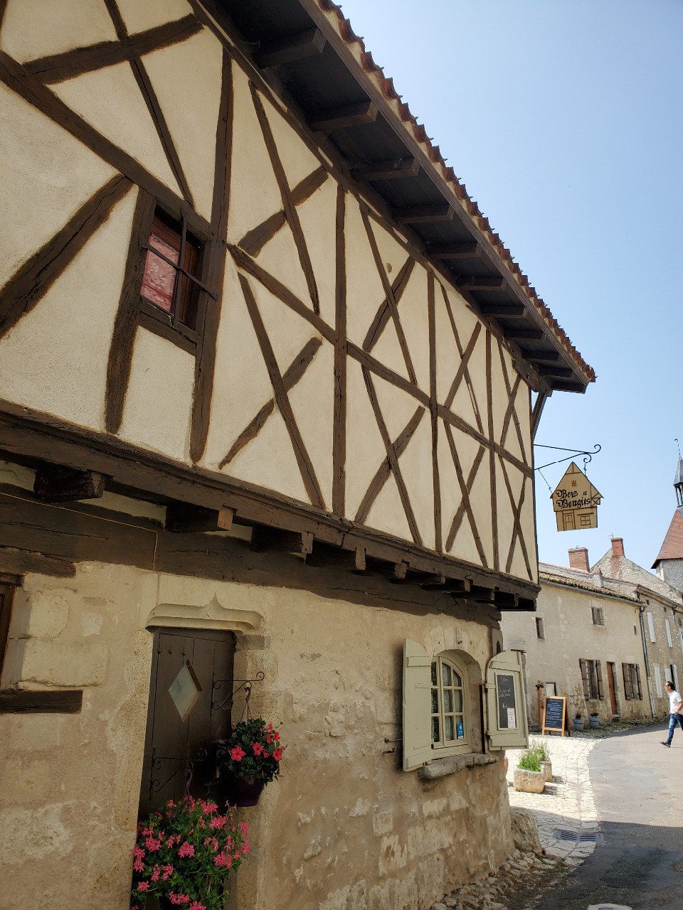 Als wir den kleinen Hügel zum Dorf hinauf tuckern, steigt die Vorfreude! Was hat es mit diesem Charroux auf sich, fragt ihr euch? Nun, Charroux ist eines der "schönsten Dörfer Frankreichs", aber es ist kein Krawallmacher wie Rocamadour oder La Roque-Gageac, die Orchideen unter den ausgezeichneten Orten. Es ist eher das Gänseblümchen, klein, unauffällig aber sehr hübsch bei näherer Betrachtung! Wir mögen das sehr!