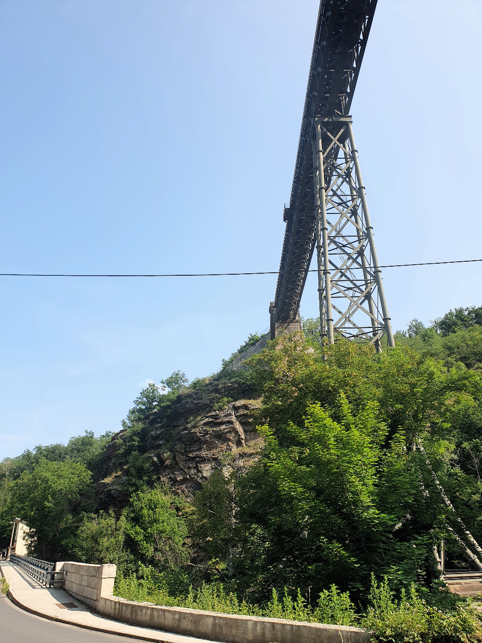 Wir cruisen so dahin und lassen unsere Gedanken schweifen, als ... STOOOP! Abrupt steigen wir in die Eisen und lassen die Transalps am Straßenrand ausrollen. Ein gewaltiges Viadukt schwebt hoch über unseren Köpfen, wuchtig und filigran zugleich. Ein verstörender und faszinierender Anblick! Sofort denken wir an den Eiffelturm, der auch aus solchen Stahlstreben besteht.
