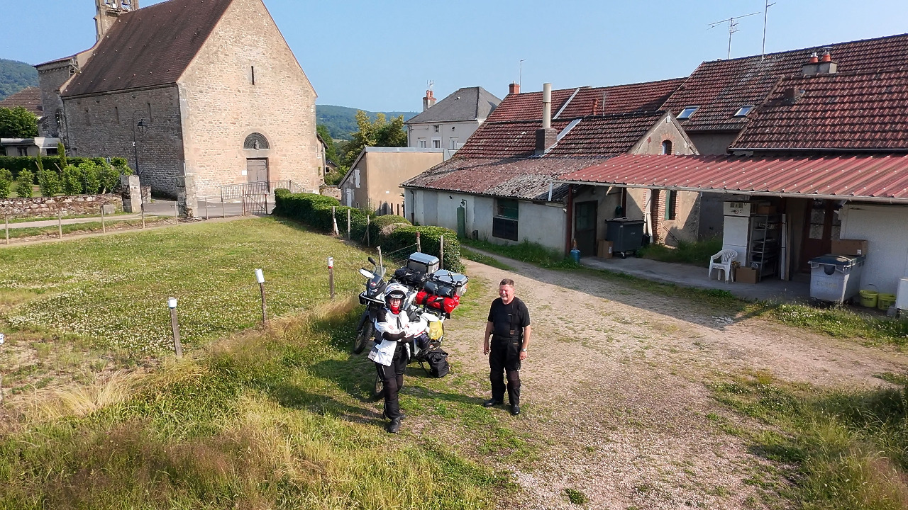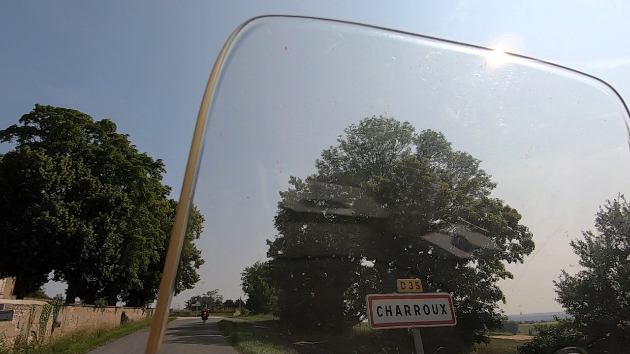 Das war unser Höhepunkt des Tages, jetzt wollen wir zur Unterkunft fahren. Wir nehmen den direkten Weg, also Luftlinie auf kleinen Straßen. Unser Plan funktioniert und wir fahren jetzt nach unserer Karte von Ort zu Ort. Warum wir uns aber in dem winzigen Dörfchen Jaligny-sur-Besbre so komplett verfahren, dass wir nur über landwirtschaftliche Wege und durch Bauernhöfe wieder auf unsere Straße finden können, bleibt bis heute ungeklärt.