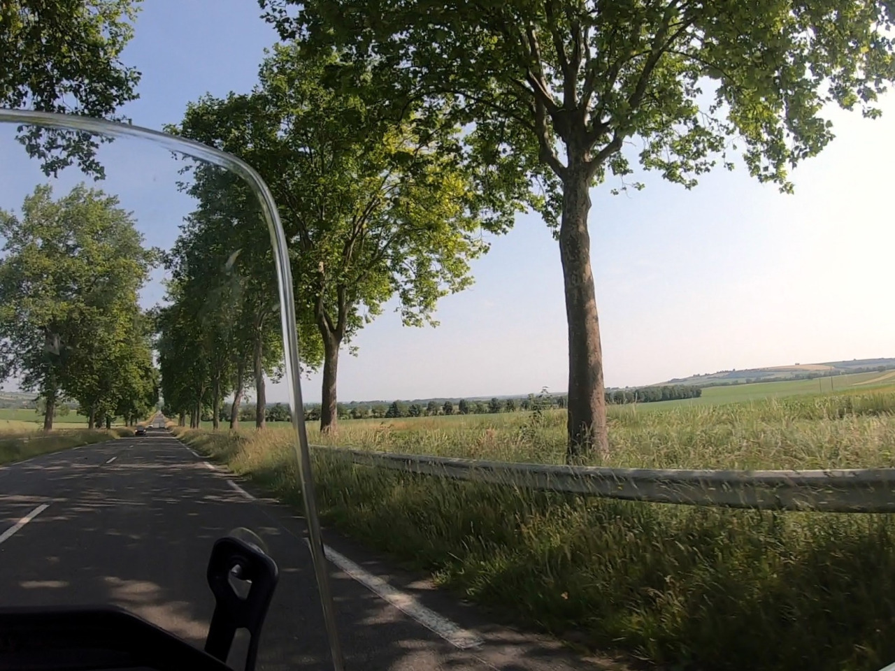 Die Region Bourgogne-Franche-Comté fanden wir immer schon wenig sympathisch. Die Landschaft ist flach, sicher hübsch aber für uns zu langweilig. Irgendwie wenig "französisch". Solche Straßen durch landschaftlich intensiv genutzte Flächen haben wir in unserer Heimat auch, es fasziniert uns zu wenig, um sich an der Fahrt zu erfreuen.