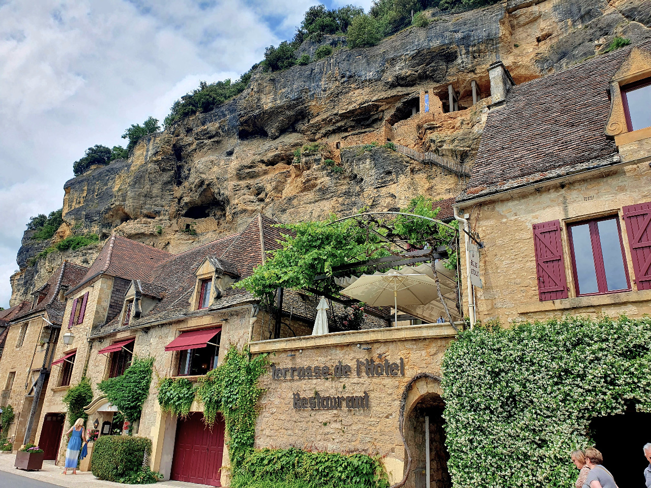 Wir schlürfen genußvoll Bier und grünen Minz-Saft und dass ein "großes Blondes" hier 9.- kostet, nehmen wir stoisch zur Kenntnis. Ist ok an so einem außergewöhnlichen Ort! Wir löffeln gewaltige Eisbecher als wir beschließen, von La Roque-Gageac genug gesehen zu haben. Wir steigen jetzt sicher nicht in die Felswand, um die alten Höhlenwohnungen zu besichtigen!