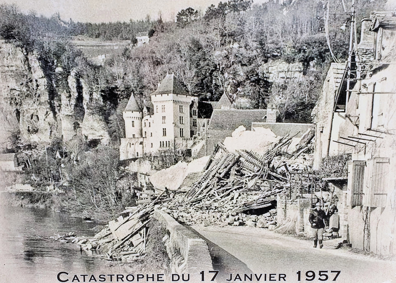 Vorbei am Info-Stand für die große Katastrophe 1957, als der Fels auf den Ort stürzte, stiefeln wir hinüber zum Dordogne-Ufer. Doch wir bekommen nur Absagen: Die Touristen-Gabarres fahren nicht nach Beynac und ein Kanu gibts nicht für One-Way. Wir schauen uns an. Was für ein Mist! Müssen wir wirklich zu Fuß nach Hause?