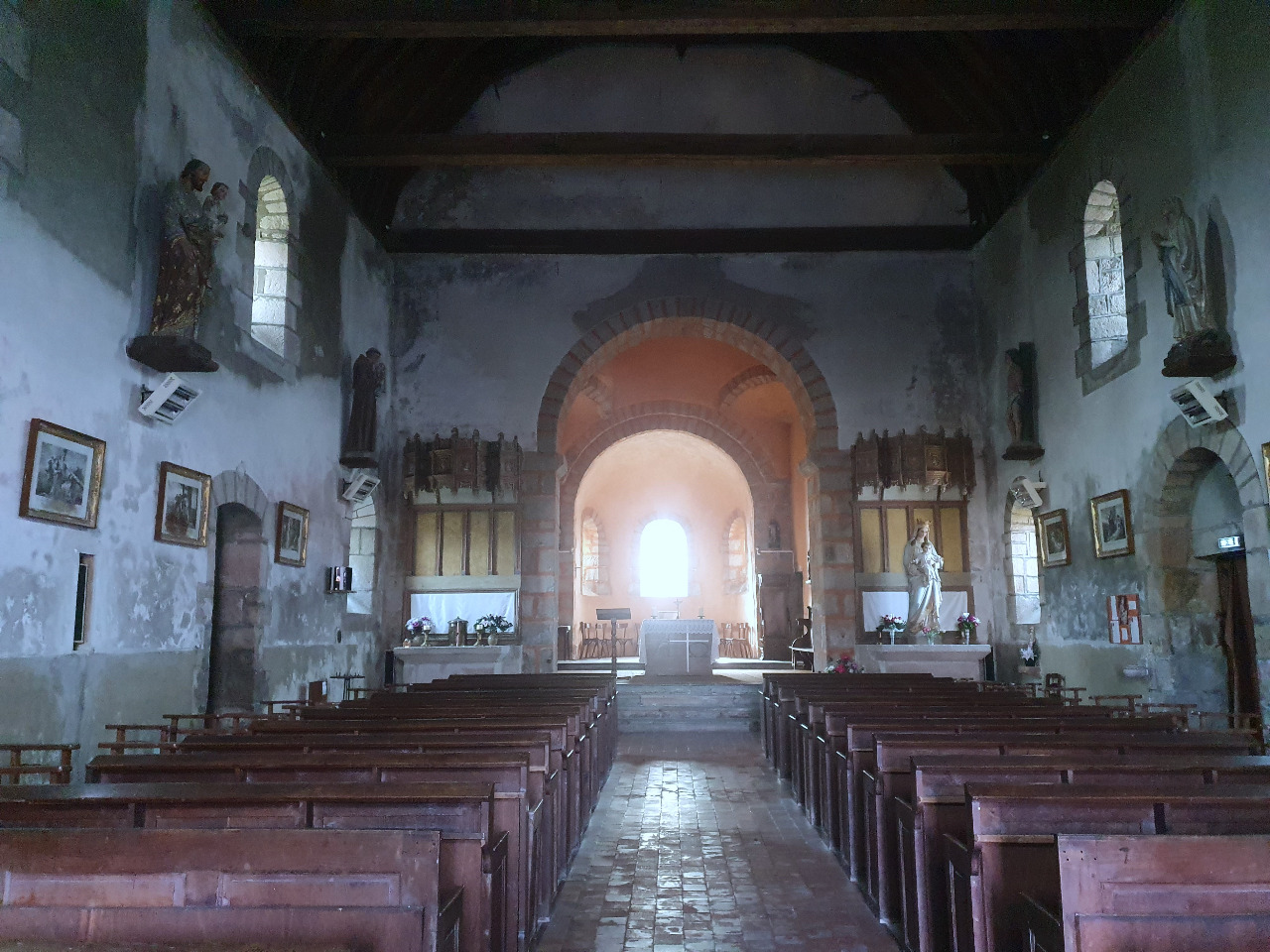 Didi macht die Transalps reisefertig und Angelika läuft neugierig in die alte Dorfkirche nebenan. Die Bauweise, die Dunkelheit, die spartanische Ausstattung mit groben Steinmetzarbeiten, dieses Gebäude muss uralt und dementsprechend faszinierend sein! Architekturgeschichte ist ihr Spezialgebiet nicht, aber diese Kirche hier ist eindeutig Mittelalter, romanisch! 1000 Jahre alt!