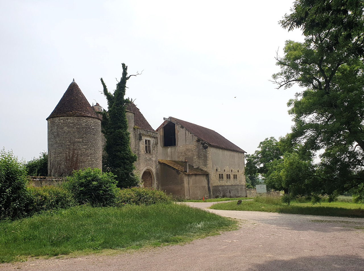 Es geht am Südrand des "Park Morvan" sanfte Hügel bergauf und bergab und durch winzige Bauernweiler mit viel zu großen Namen wie Saint-Symphorién-de-Marmagne. Wir fahren nach unserer Karte, auf der wir den Weg mit Leuchtstift eingezeichnet haben. Die Stadt Autun wollen wir großräumig auf kleinen Wegen umkreisen.
