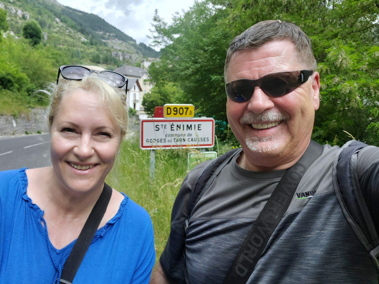 Heute wollen wir Sainte-Enimie besichtigen! Das haben wir vor zwei Jahren nicht geschafft. Dass unser Campingplatz etwas mehr als einen "kleinen Fußmarsch" entfernt ist, ist ein Schönheitsfehler. Wir haben uns da ein bissl verschätzt. Wir müssen zu Fuß gehen, denn die kleinen Shuttlebusse in der Tarnschlucht gibt es nur im Juli/August. Um 12:00 Uhr brechen wir auf.