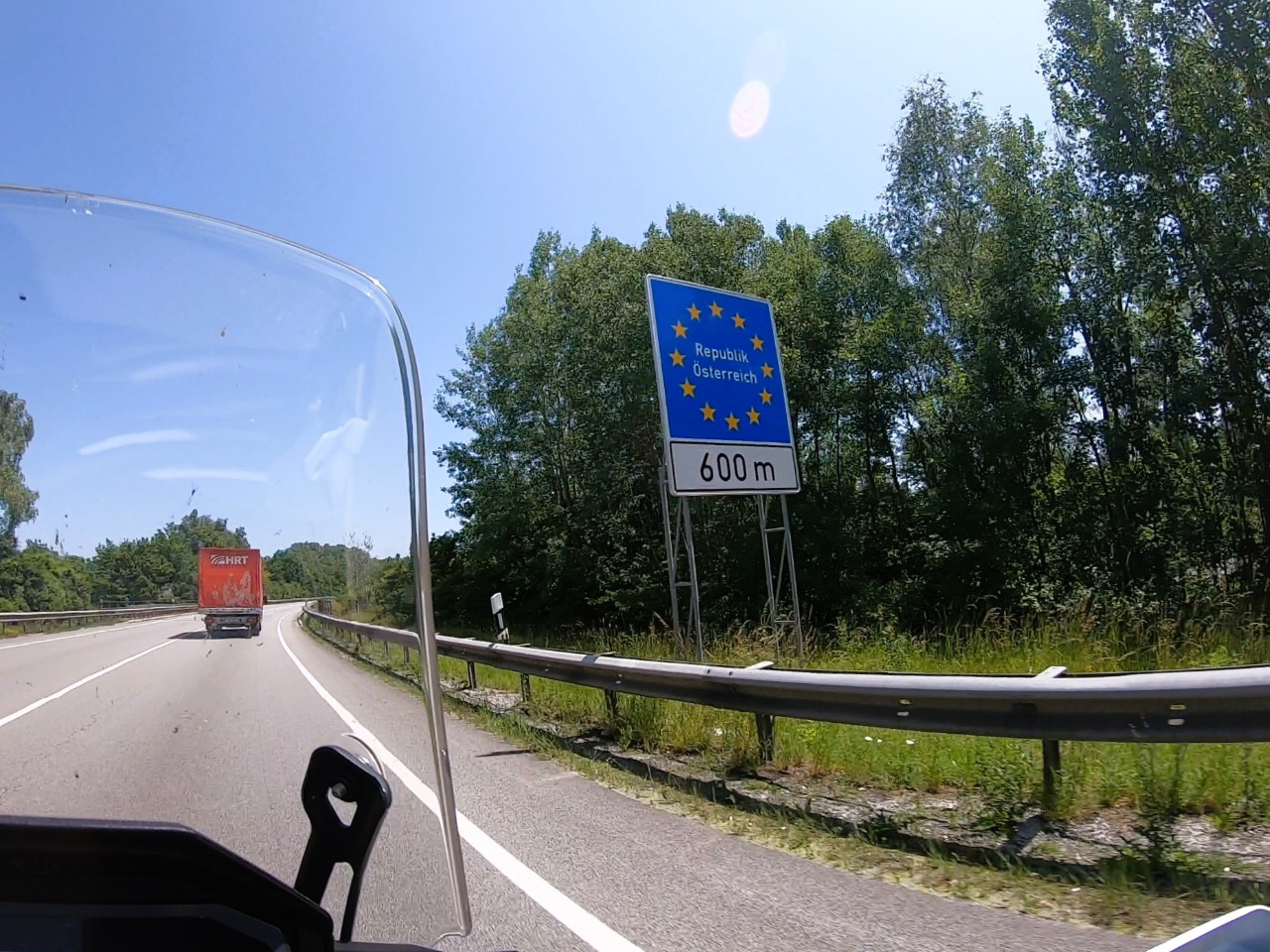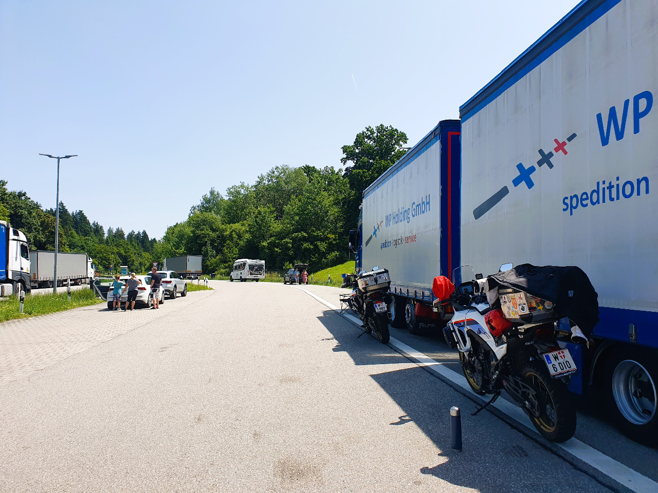 Jetzt geht es direkt in den Osten, Richtung Österreich. Es ist unfassbar heiß geworden und bei 34°C brauchen wir einige kurze Pausen. Danke an die lieben Truckerfahrer, die uns gnädig im Schatten ihrer hohen Brummis parken lassen! In der Sonne ist es mittlerweile nicht auszuhalten.