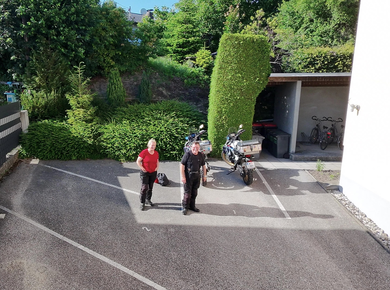 Erschöpft nehmen wir doch wieder die Autobahn. Über die A8/A1 geht es nun in hohem Tempo dahin, dennoch brauchen wir einige kurze Stopps, um unsere Wasserflaschen zu leeren. Nach einer kurzen Tankpause erreichen wir um 17:30 Uhr unsere Wohnung in Oberösterreich. GESCHAFFT!